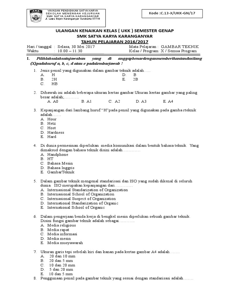 Soal Dan Jawaban Mapel Gambar Teknik Kelas X Tot Bukesi My Id from 1.bp.blogspot.com Soal dan jawaban gambar teknik kelas 10. Check spelling or type a new query. We did not find results for: Maybe you would like to learn more about one of these?