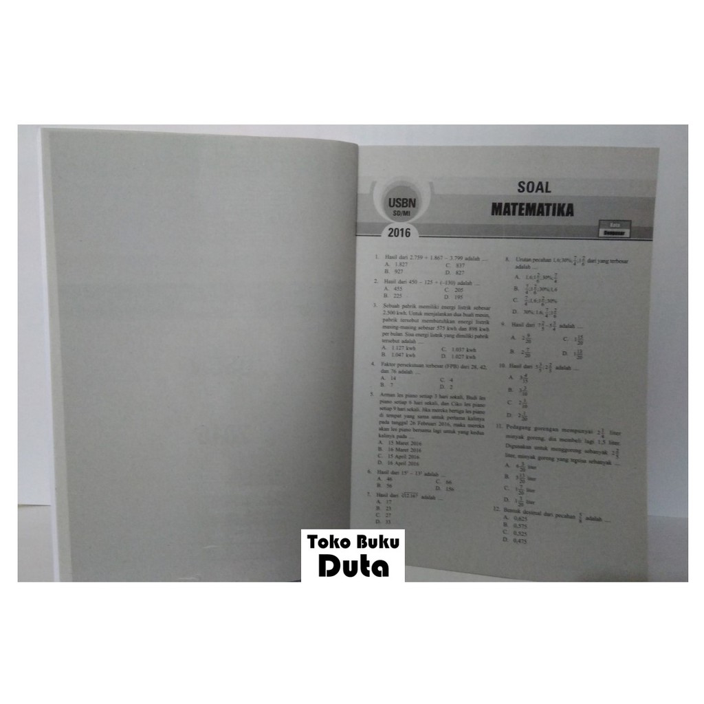 Download soal usbn/un sd tahun ajaran 2019/2020 prediksi & tryout bahasa indonesia, matematika, ipa, dilengkapi dengan 5 soal uraian dan pembahasannya. Arsip soal usbn (ujian sekolah berstandar nasional) sd tahun 2019 ada yang menarik setelah ujian utama hari kedua. Buku original #memuat rangkuman materi pelajaran yang sering muncul #dilengkapi contoh soal dan pembahasan secara detail #memuat soal latihan untuk . Uji kemampuan soal tipe usbn, untuk melatih diri menjawab soal tipe usbn per indikator dalam setiap kompetensinya. Hal itu pada mapel matematika.